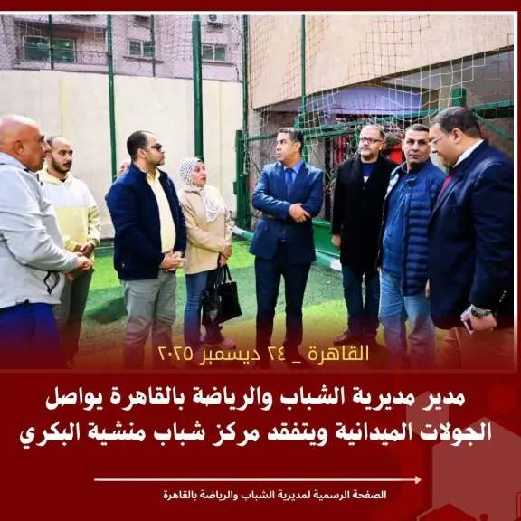 في إطار توجيهات الدكتور أشرف صبحي وزير الشباب والرياضة، والدكتور إبراهيم صابر محافظ القاهرة، أجرى الأستاذ محمود فوزي مدير مديرية الشباب والرياضة بالقاهرة جولة تفقدية إلى مركز شباب منشية البكري، وذلك برفقة فريق عمل المديرية، ومدير المنطقة، ومدير المركز.