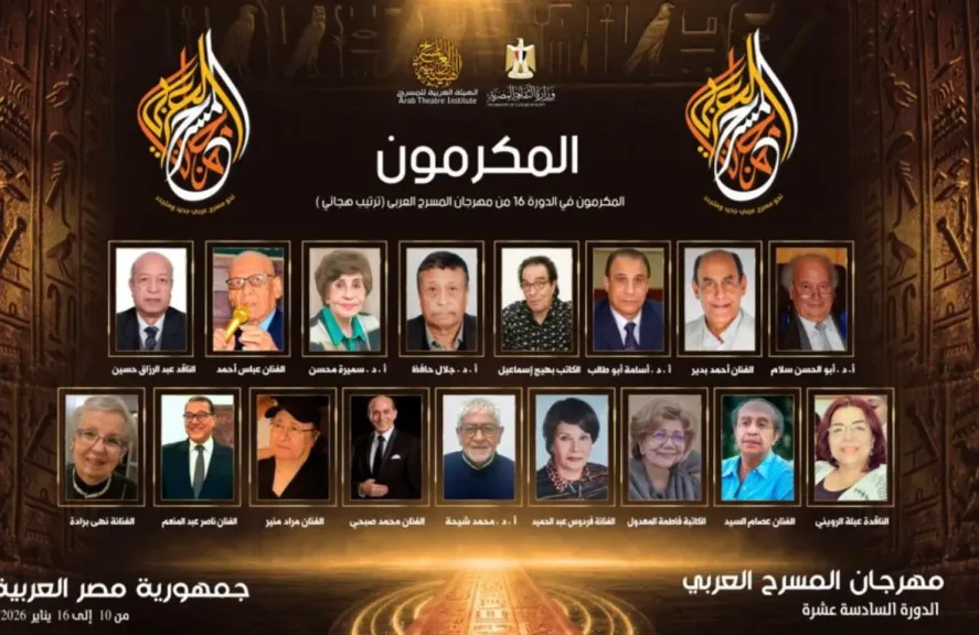 أعلنت الهيئة العربية للمسرح عن أسماء المكرمين في الدورة السادسة عشرة من مهرجان المسرح العربي، التي تُقام بالتعاون مع وزارة الثقافة المصرية بالقاهرة خلال الفترة من 10 إلى 16 يناير 2026، وتشمل قائمة المكرمين 17 فنانًا مصريًا من أصحاب البصمات البارزة في تاريخ المسرح العربي، ومن بينهم أحمد بدير، محمد صبحي، فردوس عبد الحميد، عبلة الرويني، إلى جانب تكريم خمس جهات مسرحية مؤثرة في المشهد المسرحي المعاصر.