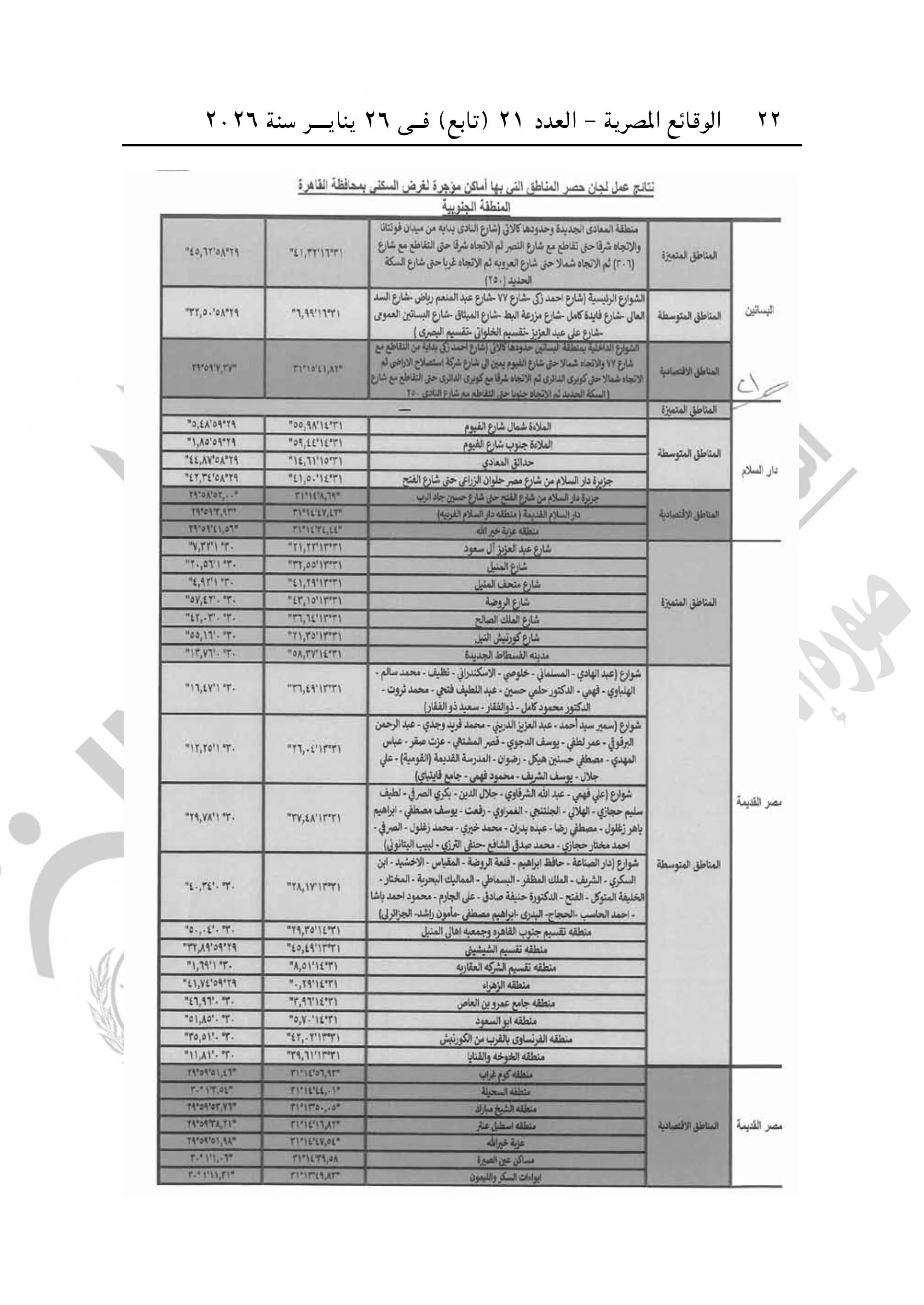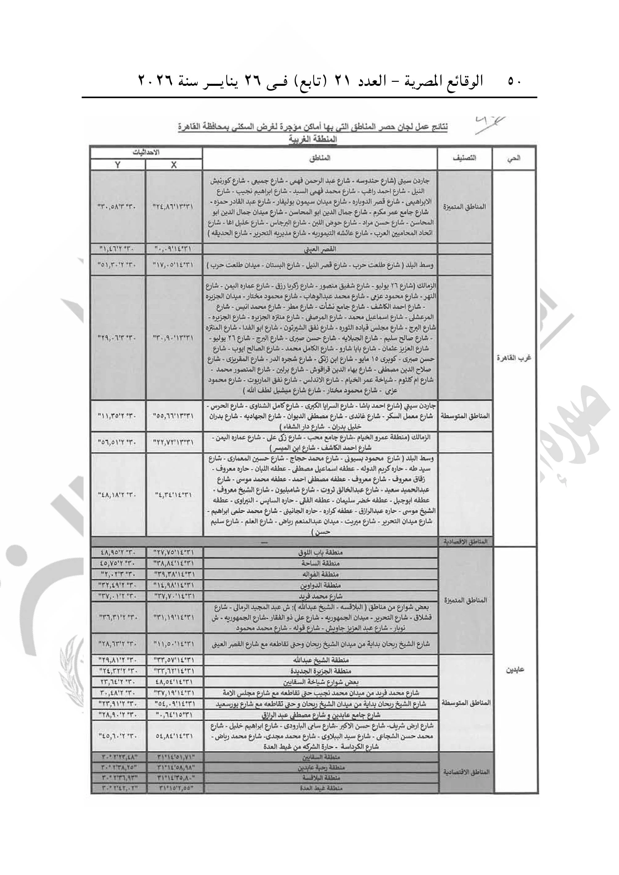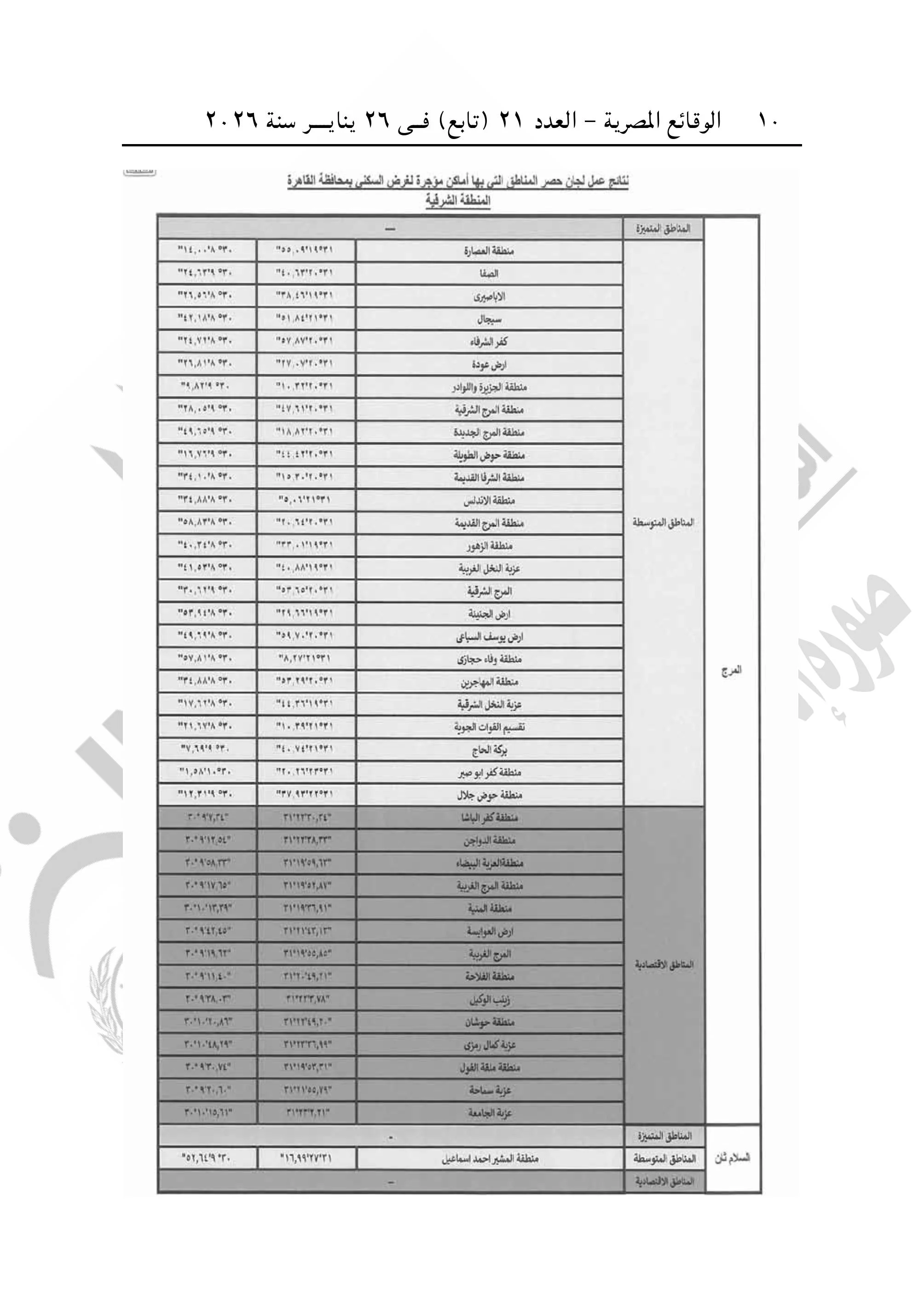وأكدت المادة الثانية من القرار تعميم هذه التقسيمات على جميع الأحياء والمناطق التابعة لمحافظة القاهرة مع الالتزام الكامل بالعمل بموجبها من قبل الجهات المختصة.