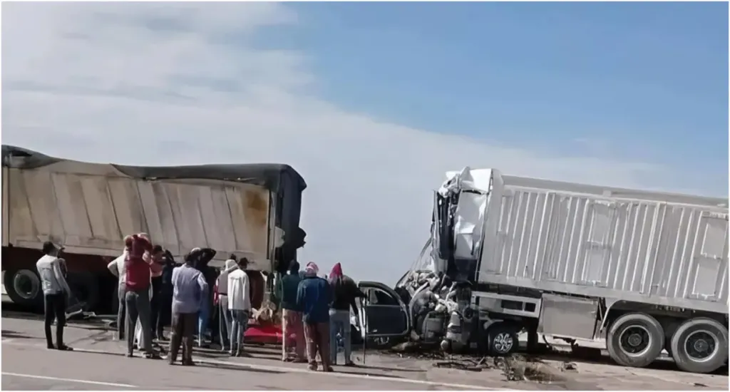 وقع الحادث إثر تصادم سيارة نقل ثقيل «تريلا» بسيارة ربع نقل كانت تقل عددًا من عمال اليومية، ما أدى إلى تهشم السيارة بالكامل.
