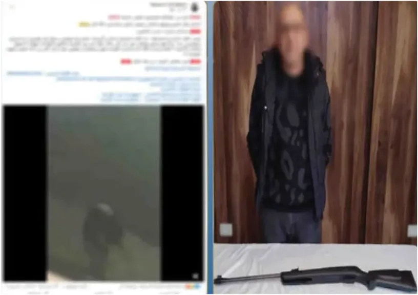 وكانت الأجهزة الأمنية قد رصدت منشورا مدعوما بمقطع فيديو متداول عبر منصات التواصل الاجتماعي يتضمن قيام شخص بإطلاق أعيرة رش في اتجاه الكلاب الضالة بأحد الشوارع، الأمر الذي أثار تفاعلا بين المتابعين ودفع الجهات المختصة إلى فحص الواقعة والتحقق من تفاصيلها.