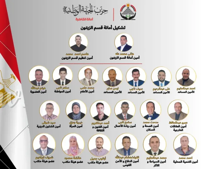 تم تكليف مجموعة من الكوادر للعمل في أمانة القاهرة على النحو التالي: