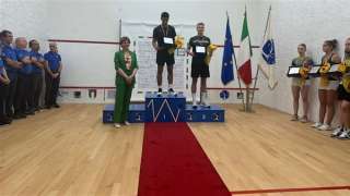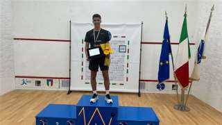 اللاعب المصري علي عزت ويحصد الميدالية الذهبية لبطولة إيطاليا المفتوحة لناشئي الإسكواش...
