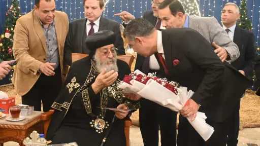 محمود فوزي يهنئ البابا تواضروس بعيد الميلاد من الكاتدرائية المرقسية