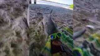 أثارت الجدل.. صورة لسمكة قرش ترتدي نظارة شمس على الشاطئ في أمريكا